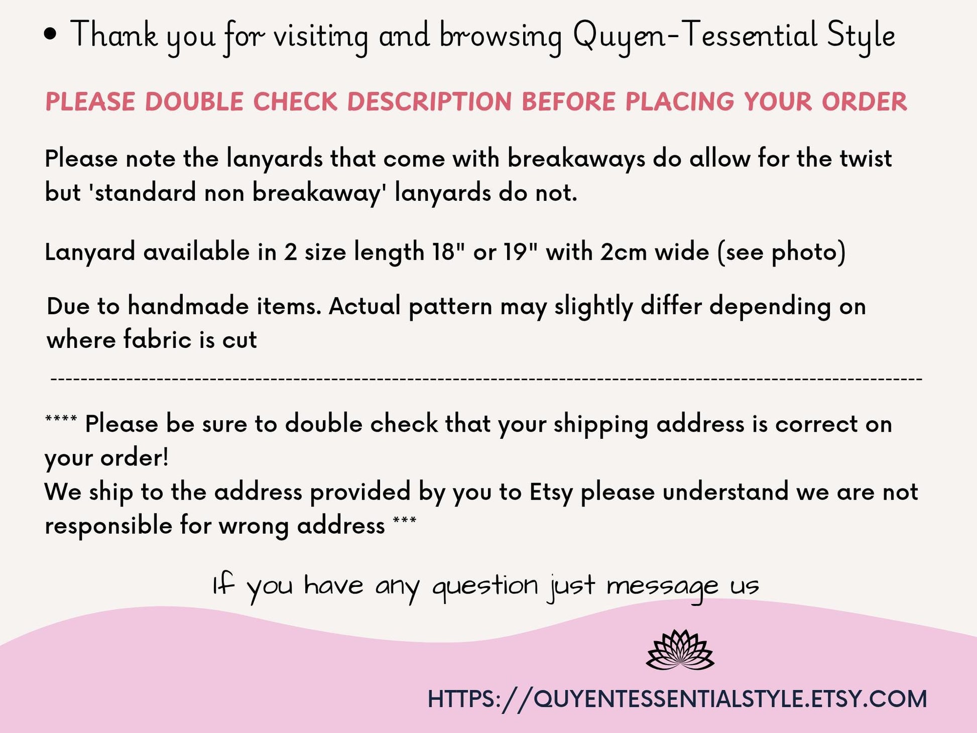 * Due to handmade items .Actual pattern may slightly differ depending on where fabric is cut