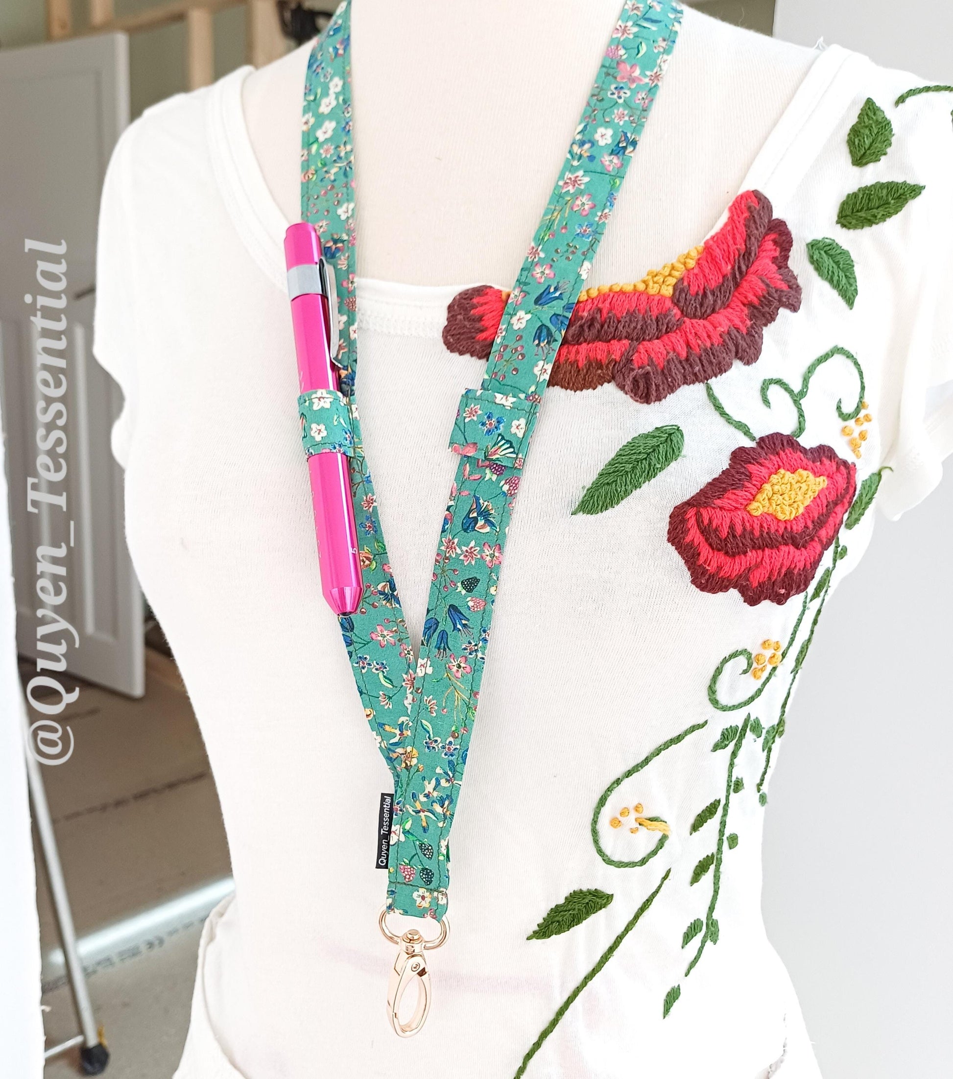 Liberty Floral Pen Loop Lanyard | Tana Lawn Cotton ID Badge Holder | Glasses & Pen Keychain